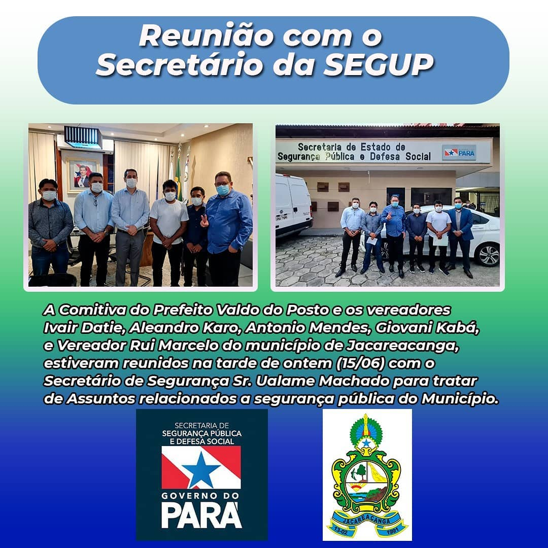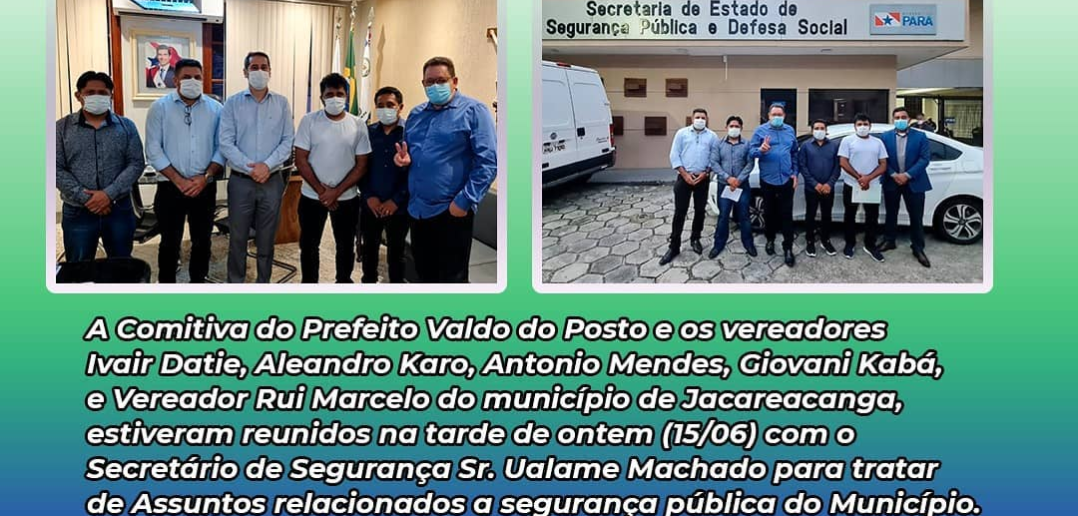 Prefeito de Jacareacanga e Vice-Presidente do Consórcio dos Municípios do Tapajós Sebastião Aurivaldo (Valdo do Posto) em comitiva com vereadores reunidos com o Secretário de Segurança Sr. Ualame Machado tratando de Assuntos relacionados a segurança pública do Município.